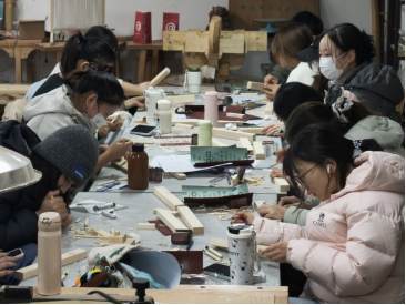 2025年12月5日至7日,伟德BV1946在明向校区木作工坊举办了“榫卯匠心·斗拱制作拼接挑战”活动。活动面向全校青年学生,通过亲手拆解、拼装山西古建同款五铺作斗拱,带领参与活动的同学深度体验中国传统木构“无钉无胶”的力学智慧与造型美学。