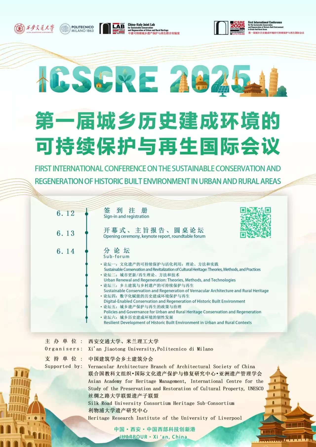 2025年6月12日至14日,“第一届城乡历史建成环境的可持续保护与再生国际会议”在西安交通大学创新港校区成功举办。会议由西安交通大学与意大利米兰理工大学联合主办。我院青年教师李岚、秦岭入选“乡土建筑与乡村遗产的可持续保护与再生”分论坛论文宣讲环节,与国内外建筑领域专家学者,交流探讨城乡遗产保护相关前沿议题。