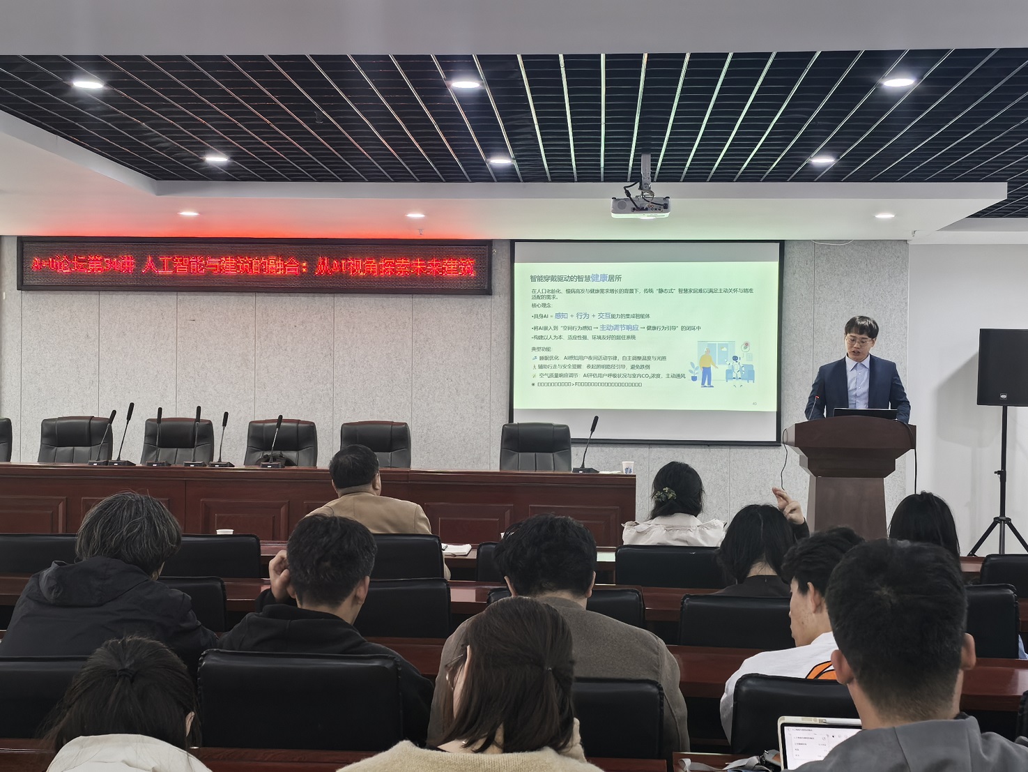讲座现场反响热烈,学院师生围绕“建筑智能化设计的边界”“居住空间的行为感知方式”等问题展开深入讨论。此次讲座不仅拓宽了师生对智能建筑发展趋势的认知,也为绿色建筑、行为导向设计等议题的教学与研究注入了新的思路。