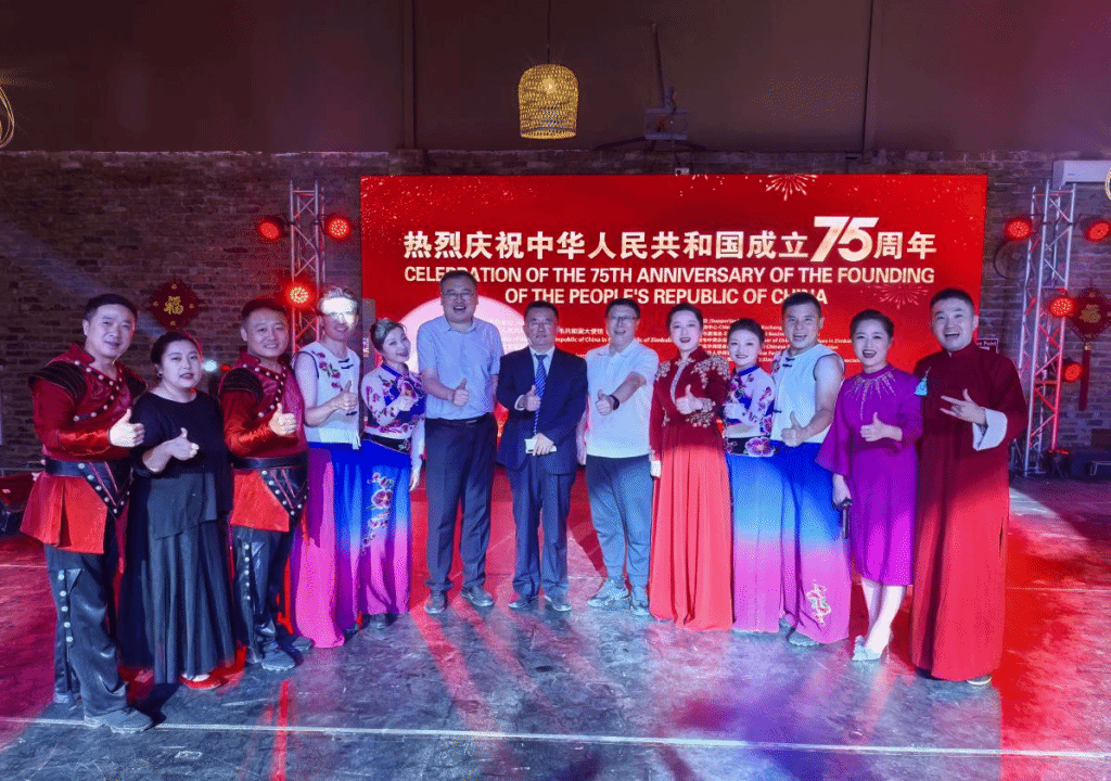 9月27日中午,在中国驻津巴布韦使馆举行的庆祝中华人民共和国成立75周年招待会上,山西文艺演出团为现场观众献上了一场精彩绝伦的文艺盛宴。驻津巴布韦大使周鼎及夫人,津巴布韦代理外长、司法部长齐扬比,国防部长穆欣古里,矿业部长奇坦杜等党政军高级官员,以及各国驻津使节、中资企业机构和侨胞代表共500多人出席了招待会。