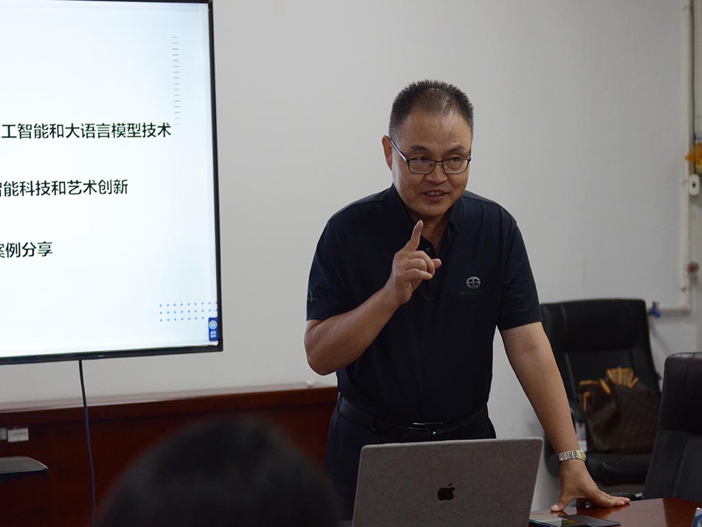 在“智能+”时代背景下的数字创意与智能科技人才高质量培养论坛中,省赛秘书长夏博老师主持了会议。专家委员严武军老师围绕“人工智能时代智能科技与艺术创新实践”,深入分析了AI技术在艺术领域的应用,强调数字艺术在“智能+”时代的广阔前景,并表示智能科技将持续推动艺术创作的革新,数字与艺术的结合将成为未来人才培养的重要方向。