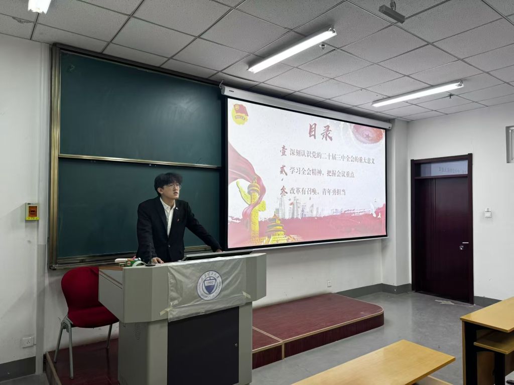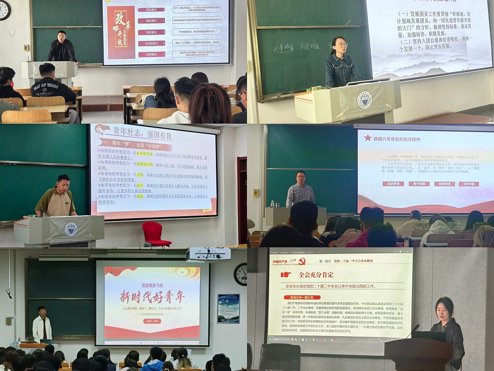 王婷婷面向团员青年宣讲党的二十届三中全会精神;张涛围绕“新时代青年如何挺膺担当”的主题,与团员青年展开了深入的讨论;梁皓然以《凝心聚力 共筑青春梦想》为题,清晰而有力地阐述了青年团员的责任与使命。李艳以《举国同庆 盛世华诞》为题,紧密结合共青团的使命与准则,详细讲解了群众入团程序以及团员推优入党的流程。刘锋军以《心中有国 强国有我》为题,通过现代巴黎奥运会选手潘展乐的事迹、近代鸦片战争和甲午中日战争等历史实例,告诫广大青年要铭记历史,不忘国耻。姚张堡以《弘扬探月精神,追逐自主创新》为题,清晰阐明了嫦娥六号任务背后所蕴含的探月精神。杨森淼则以《青春向党 格我向新》为题,热情洋溢地鼓励广大青年要拼搏向上,追求卓越。