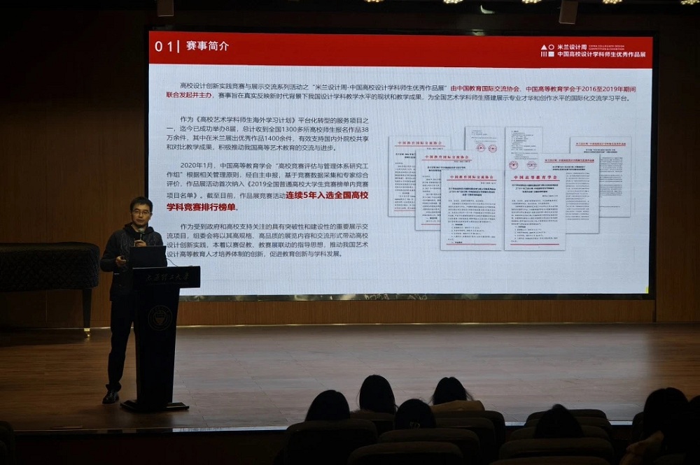巡讲会上,米兰设计周组委会运营总负责人周光明老师受邀出席,他详细阐述了第九届米兰设计周的赛事背景、参赛规则、赛道设置及评审标准,为师生们提供了权威的赛事解读。