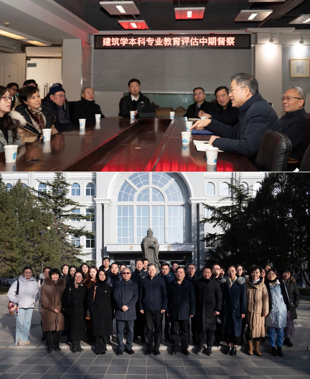 2024年12月13日,全国高等学校建筑学专业教育评估委员会委员专家西南交通大学沈中伟教授、中南建筑设计院股份有限公司首席总建筑师(执行)李春舫莅临我院,对我院建筑学专业本科(五年制)教育教学质量进行中期督察。