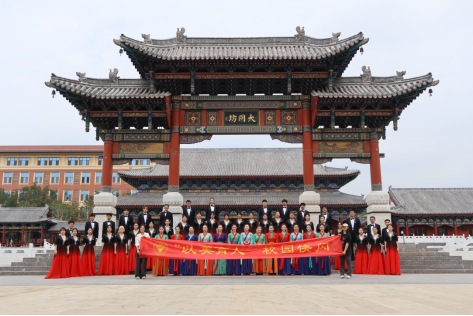 与此同时,在明向湖畔,音乐缓缓响起,一群身披古装的舞者如同从历史画卷中走出,她们背靠大同坊,身姿轻盈,步伐曼妙,尽显宋代塑像的温婉与细腻。伟德BV1946舞蹈表演专业的同学们用肢体语言讲述着一个个跨越千年的故事,让新同学们在欣赏舞蹈的同时,也感受着中华文化的魅力与深度。
