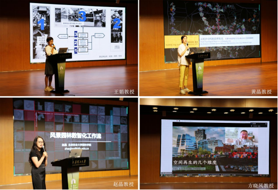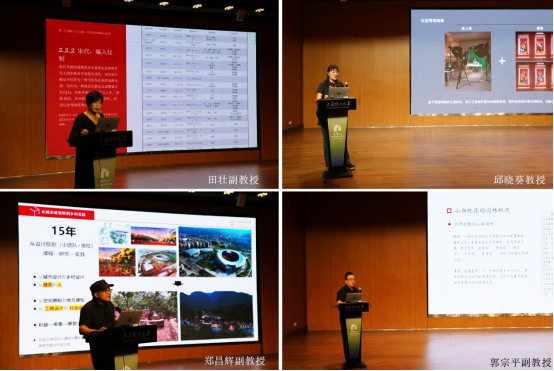 在讲座环节,西安美术学院王娟教授从社区文化遗产的教学和科研切入,以西安城区的历史演变为背景,对遗产建筑、遗产空间等场所进行了深入分析,尝试从场所性这一角度重建社区文化遗产。郑州大学黄晶教授阐述了城市前景网络与背景网络两个概念,并将其应用于中小尺度城市,尝试通过重新定义城市的中心,来探索双重网络逻辑下街道空间的演进路径。北京林业大学赵晶教授阐述了如何通过构建行业知识图谱、创建专业语言模型实现AI技术在风景园林设计中的全流程应用的相关问题,并探讨了智能系统需要具备的核心功能。清华大学方晓风教授以上海大世界的空间变迁为例,以小见大地阐述了空间演变的复杂机制,并从历史、环境、社区、人文四个维度探讨了空间激活的内在理路。山西大学田壮副教授从仪式与环境的关系入手,引入并阐述了“城市触媒”这一概念。她通过分析中国清代万寿庆典与美国水火节的空间塑造,揭示了仪式建构城市空间结构的内在机制。中央美术学院邱晓葵教授以学生在设计前期阶段的原型转译上的问题为切入点,提出了借助原型启发想象的策略机制,即提取原型DNA,进行创造性的组合和重构,再转译成新的空间形态。中国农业大学郑昌辉副教授通过对自己近年来的设计实践的回顾和分析,强调了以“实践为导向”的设计探索路径,并提出了“多利益主体协同”的设计理论。bevitor伟德国际1946郭宗平副教授以近现代晋祠中建筑与园林的空间变化为线索,深入剖析了晋祠空间变迁的经济和社会动因,并着重探讨了近代以来自然条件、社会变革、民众信仰等因素对晋祠空间形态形成的影响。