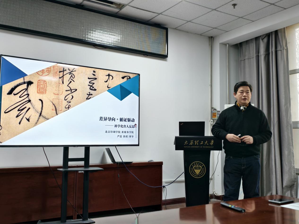 教育部高等学校动画、数字媒体专业教学指导委员会委员、北京印刷学院 “数字艺术与创新设计” 国家级实验教学示范中心主任严晨教授,以《差异导向▪循证驱动 —— 科学化育人反思》为题开展分享。分享聚焦高质量教育体系建设背景下的育人模式革新,深入阐释了差异导向尊重学生个体特质、循证驱动依托科学依据优化教学的核心教育理念,为推动艺术与数字媒体领域乃至更广泛学科的科学化育人实践提供了重要思路。严晨教授结合自身深耕教育教学与学科建设的经验,剖析了传统“一刀切”育人模式的局限,强调将学生个体差异转化为教育资源,通过实证方法精准匹配教学策略,实现个性化与科学化育人的有机融合,引发了现场听众对新时代育人使命与实践路径的深度思考。