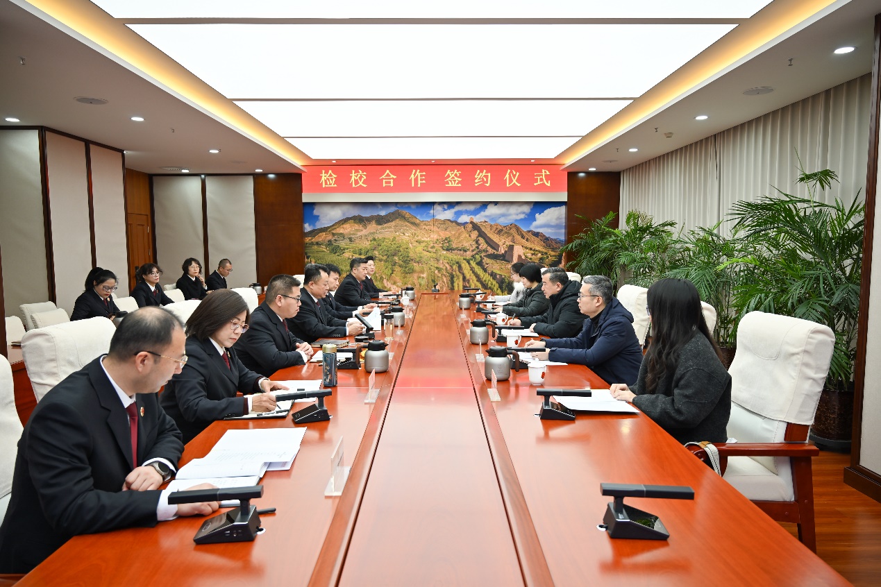 2026年1月27日上午,山西省人民检察院太原铁路运输分院与伟德BV1946在铁检分院会议室举行《校检合作协议书》签约仪式,正式建立战略合作关系。铁检分院党组书记、检察长郑黎明,我院郭普庆书记出席签约仪式,仪式由铁检分院党组成员、政治部主任白冰主持。