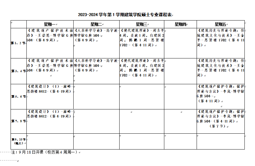 2023-2024学年第1学期建筑学院硕士专业课程表