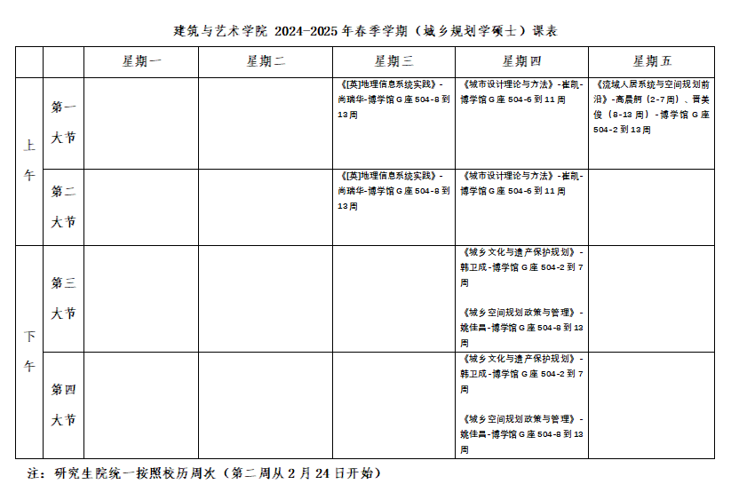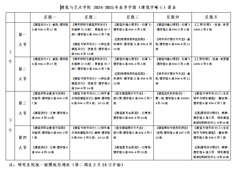 伟德BV1946 2024-2025年春季学期(硕士)课表
